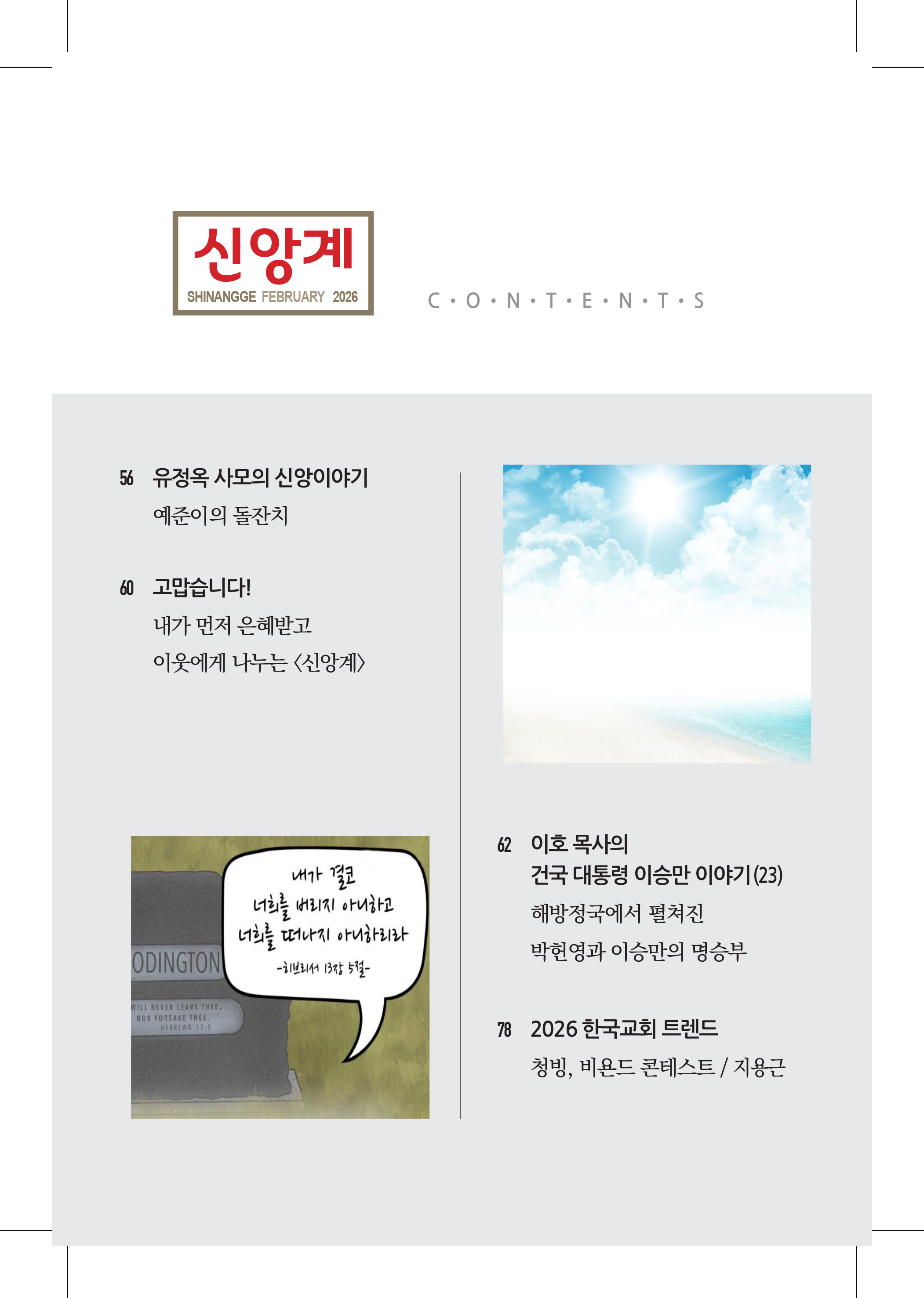 이달의 신앙계 목차